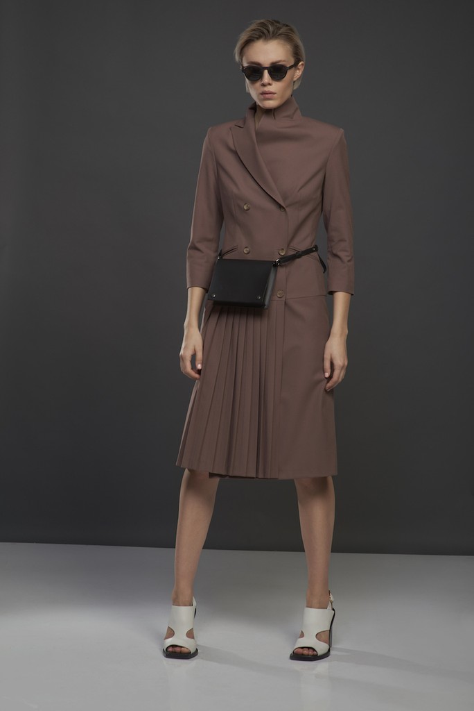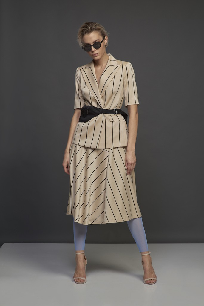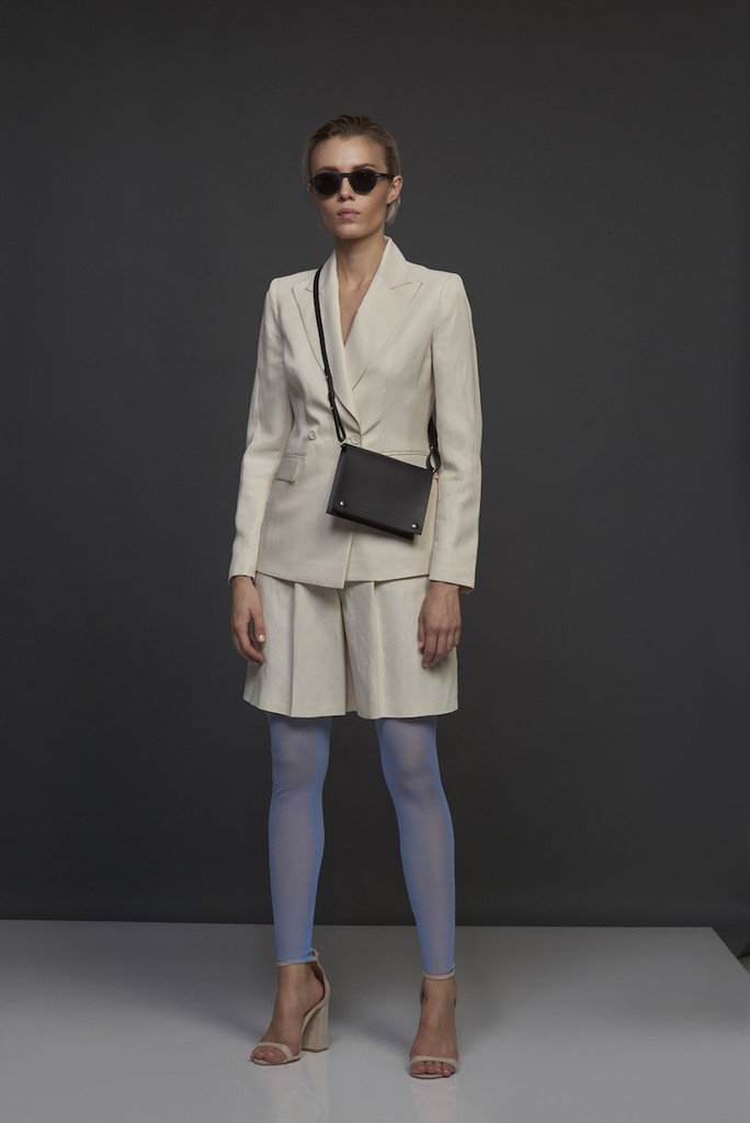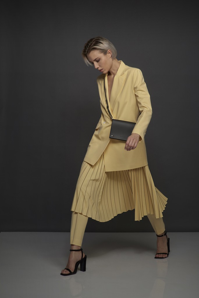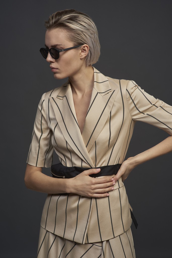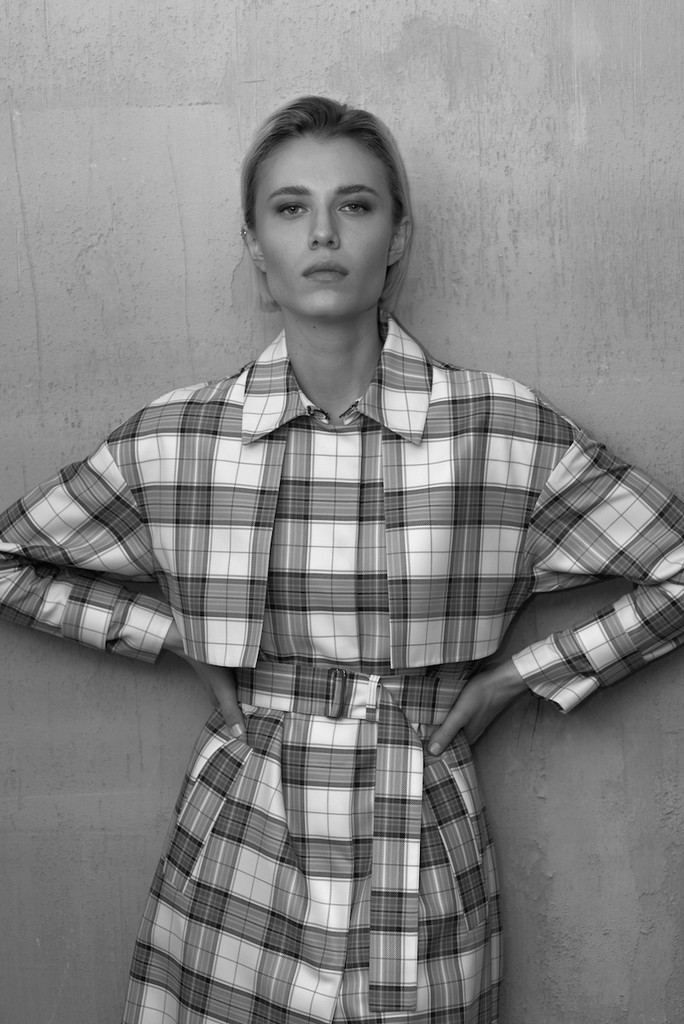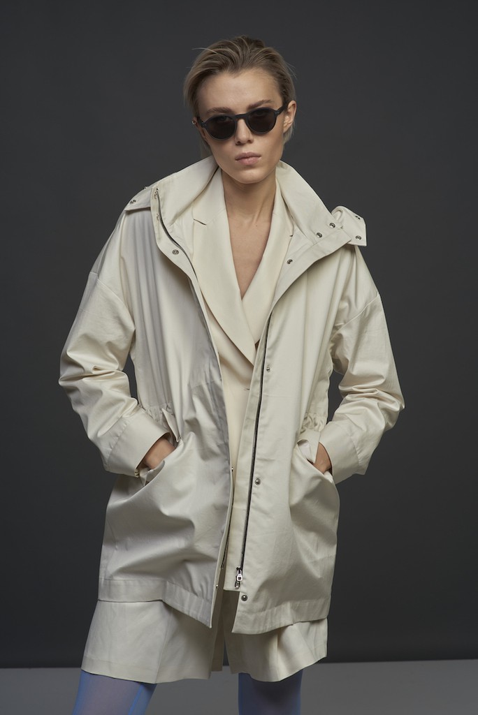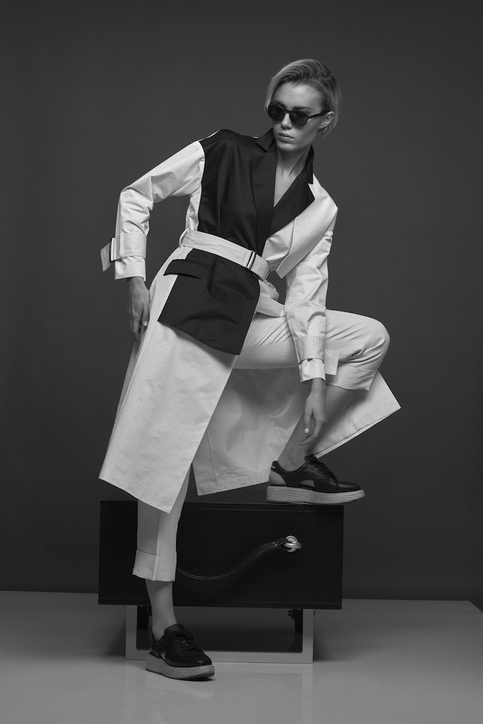 The upcoming Vassa&Co collection presents a number of unique sillouttes such as single and double breasted jackets with an extended shoulder line, dresses, skirts of various kinds- those working as a transformer item, or adorned with removable details such as belts and pockets.