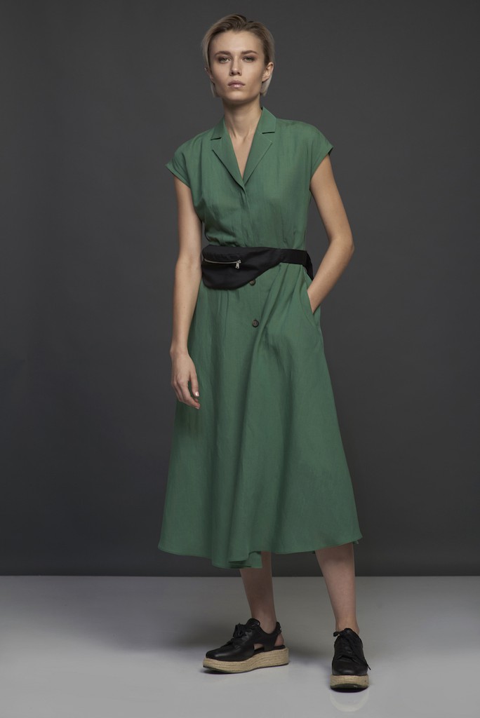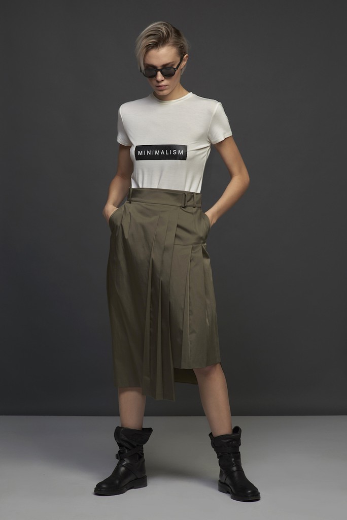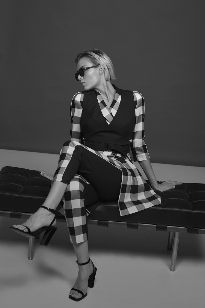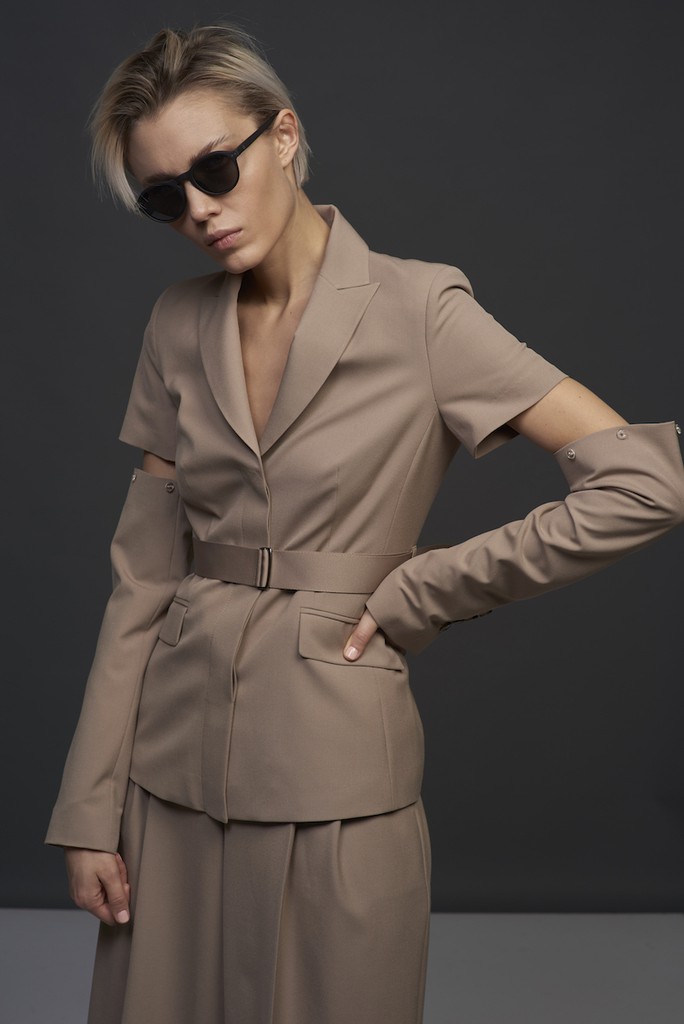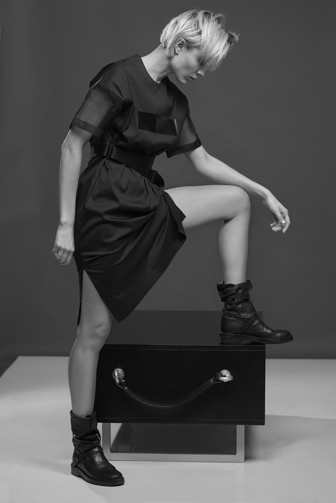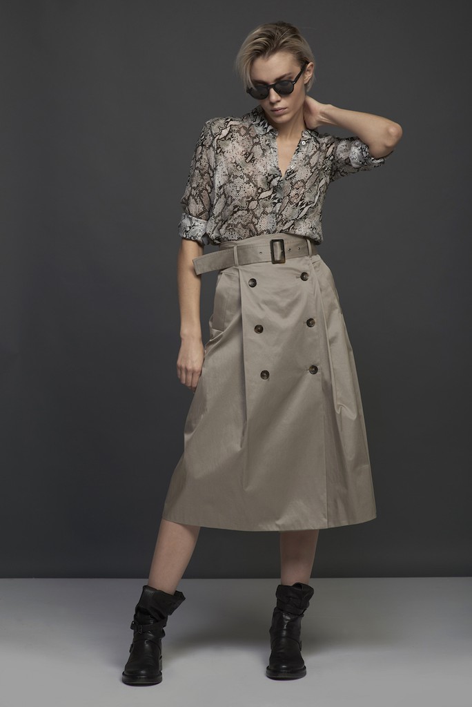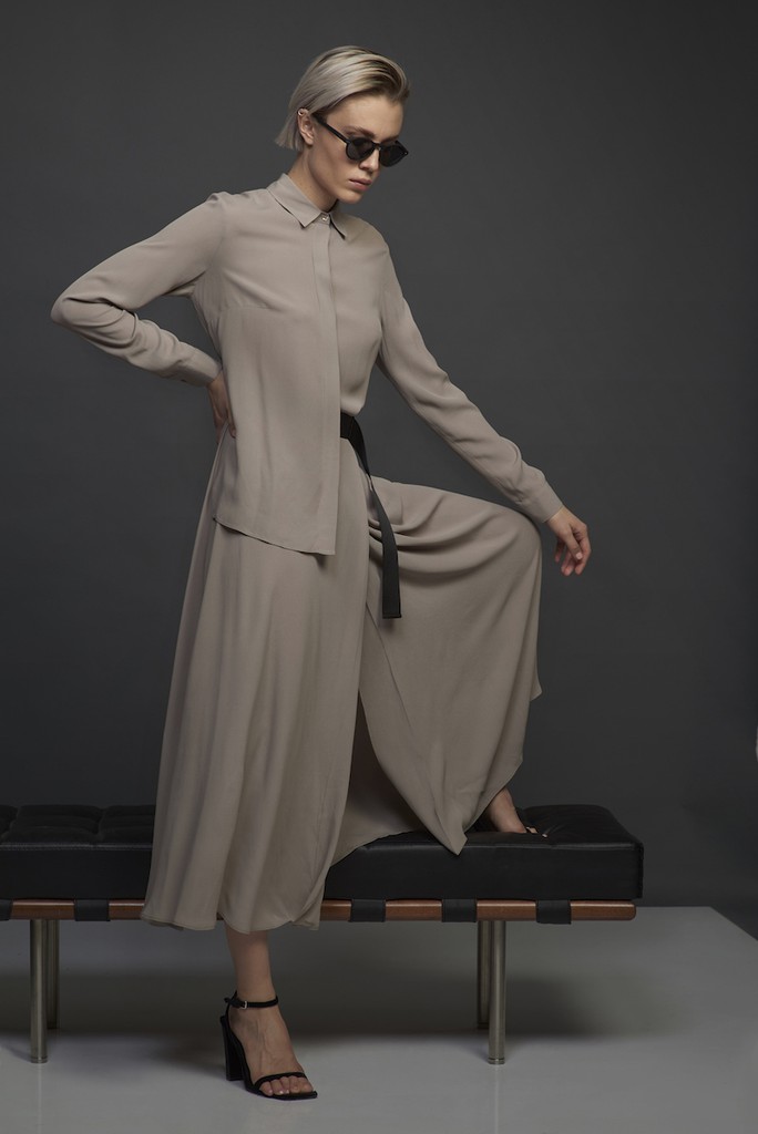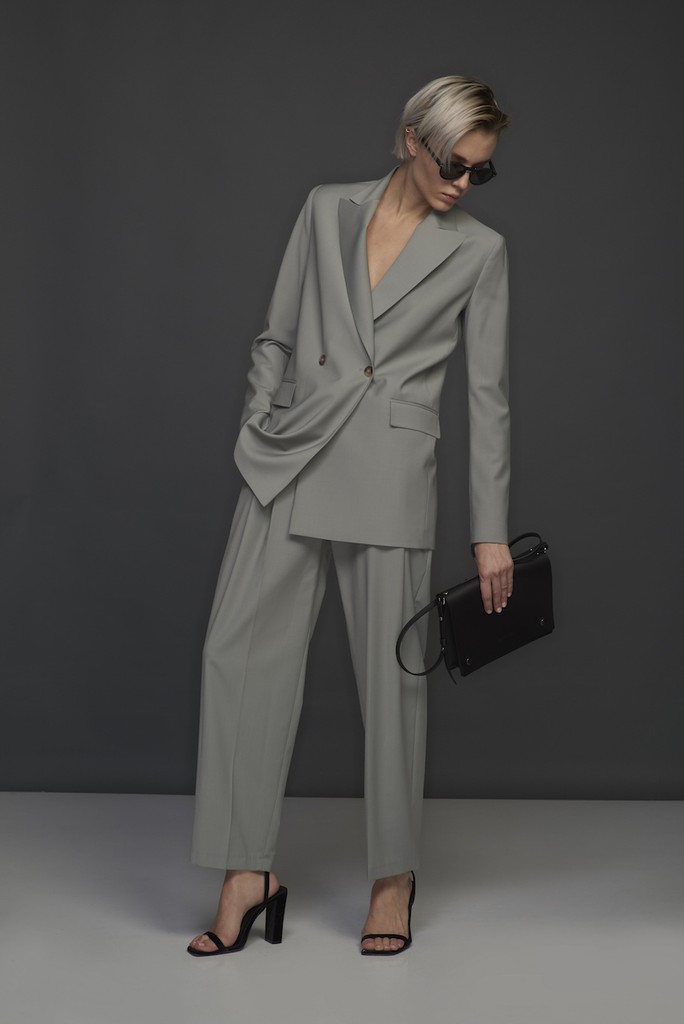 The upcoming Vassa&Co collection presents a number of unique sillouttes such as single and double breasted jackets with an extended shoulder line, dresses, skirts of various kinds- those working as a transformer item, or adorned with removable details such as belts and pockets.